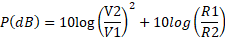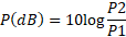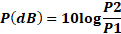 P(dB) = 10 log10 (P2/P1) |