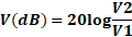 V(dB) = 20 log10 (V2/V1) |